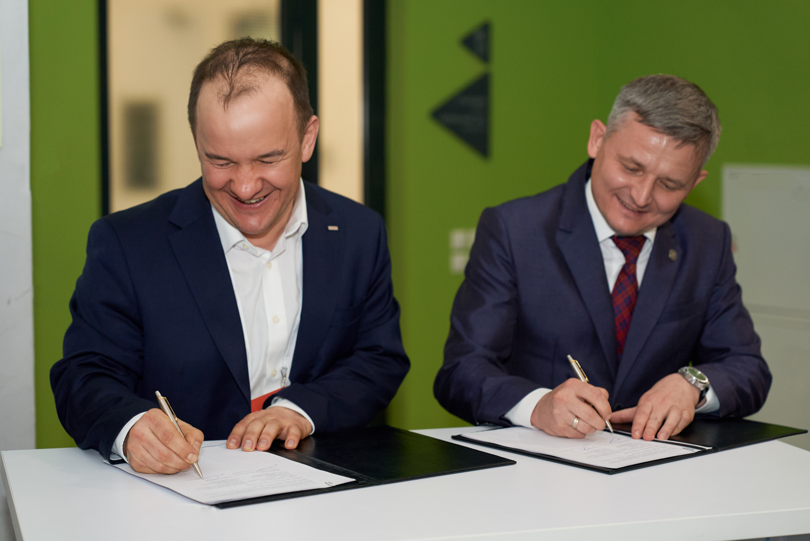 Соглашение о совместной работе по популяризации и внедрению роботизации в российской промышленности и логистике подписали директор Центра развития промышленной робототехники российского ИТ-вуза Николай Смирнов и генеральный директор KUKA Россия Пётр Смоленцев.
