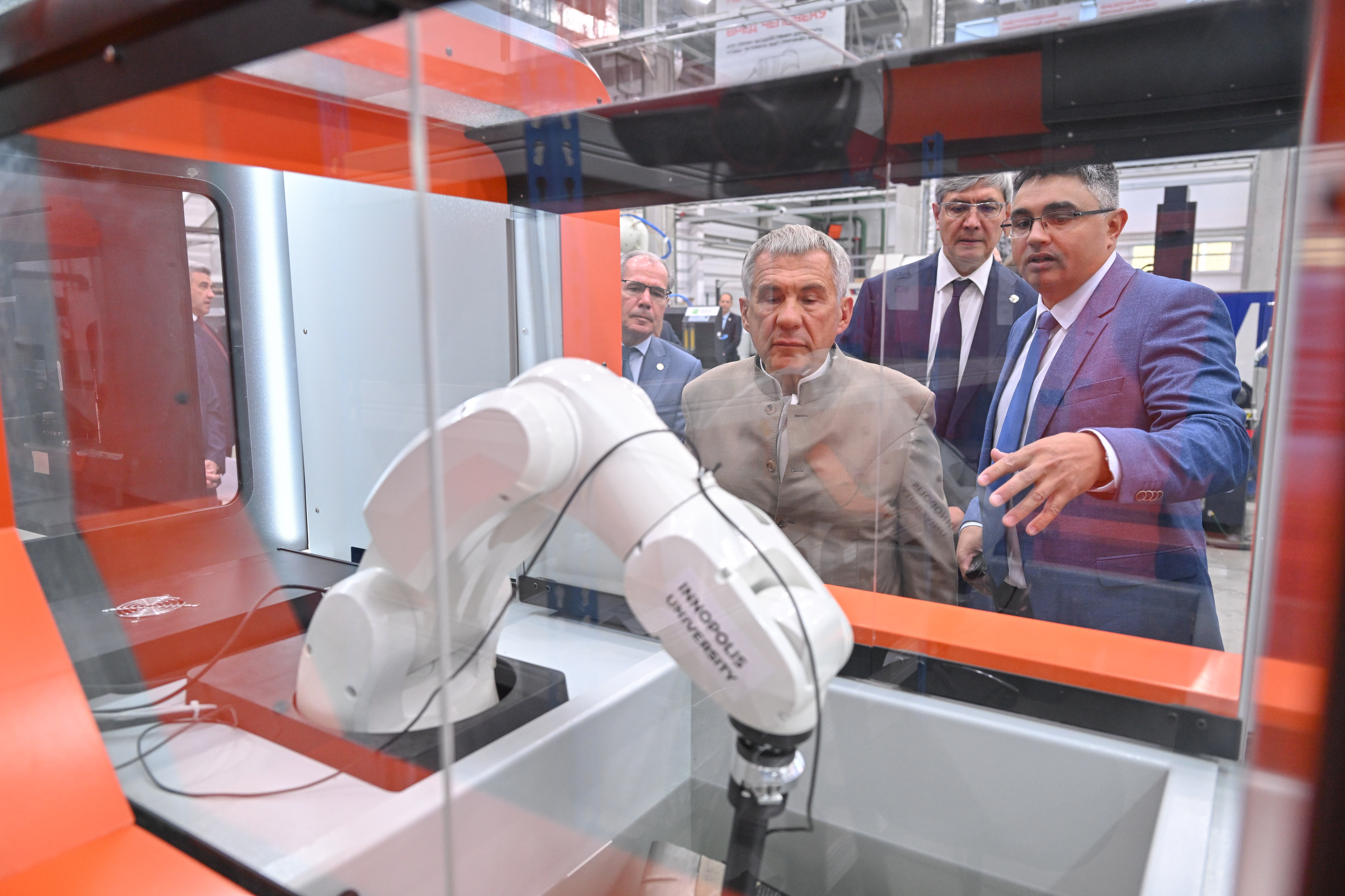 Рустам Минниханов провёл закрытую встречу по внедрению роботов на производстве с представителями отраслевых министерств и руководителями Казанского вертолётного завода, «Татнефть», «Нижнекамскнефтехим», «ТаграС-Холдинг», «Данафлекс-Нано», «Татхимфармпрепараты» и других предприятий республики. Демонстрация робототехнических комплексов компаний TECHNORED, Интех, Эйдос Робототехника, ESTUN Automation, Тесвел и KUKA прошла на площадке Центра развития промышленной робототехники Университета Иннополис.