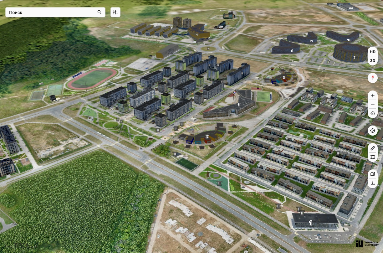 Цифровая модель города позволит администрации Иннополиса в реальном времени мониторить обращения горожан, состояние жилых домов, парков, общественных пространств и других городских объектов и планировать развитие территории. Проект на форуме Digital Innopolis Days 2025 представили разработчики 4D-модели — специалисты Центра геопространственных решений Университета Иннополис.